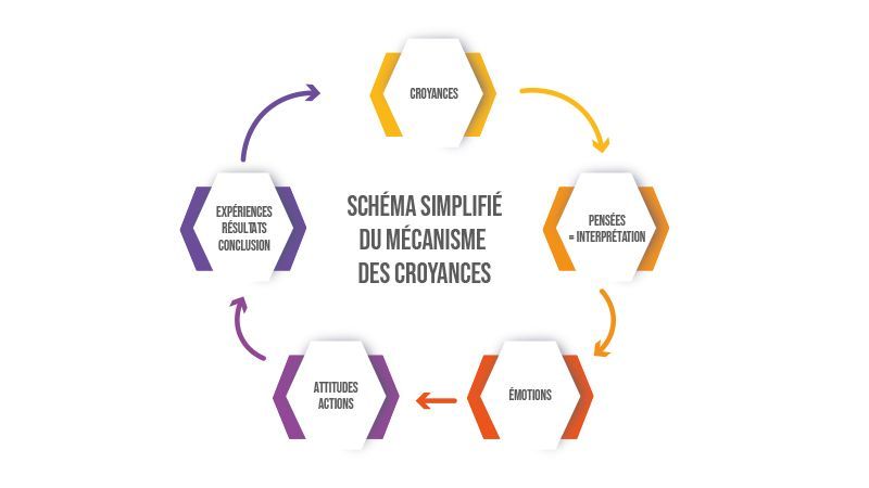 Le mécanisme des croyances, peut être présenté en 8 étapes consécutives et logiquement reliées: